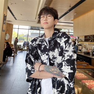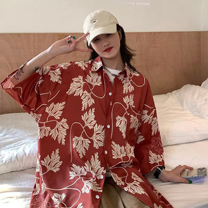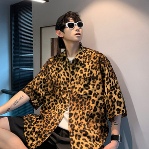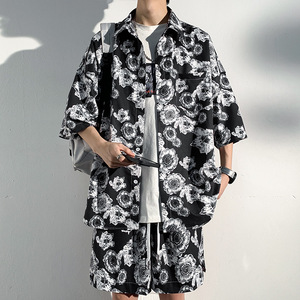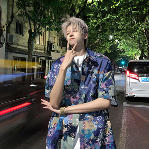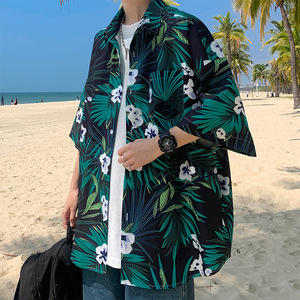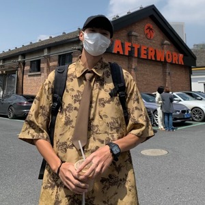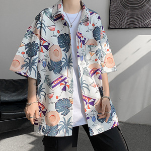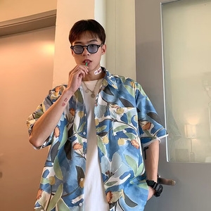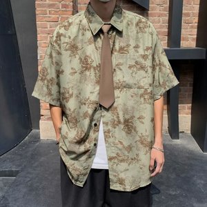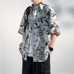 花柄シャツ、カジュアル、男女同型、高級トップス、香港風、ハンサム、若々しい、人気デザイン、半袖