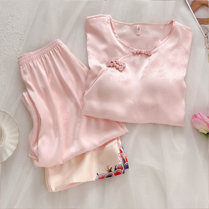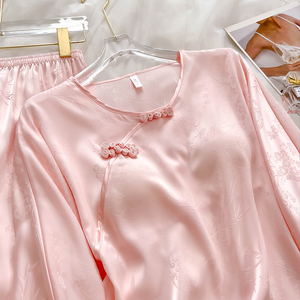 新しい中国風のシルクパジャマ女性のための春と秋の長袖と半袖のマルベリーシルクホーム服セット胸パッド付き夏