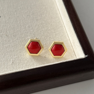 女性用レッドイヤリング、レトロな香港スタイルのハイエンドイヤリング、2023年の新しいホットスタイル、ユニークなニッチな秋冬の新年イヤリング