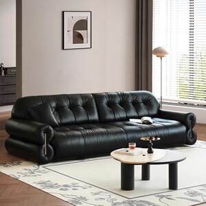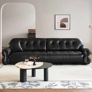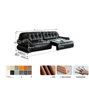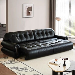 黒糖イタリアンミニマリストフレンチレトロクラウドライトラグジュアリーソファ本革ソファ電動リビング壁掛けブラック機能