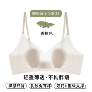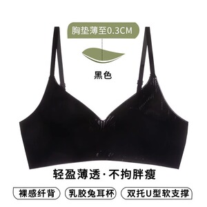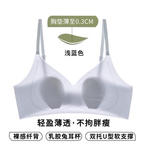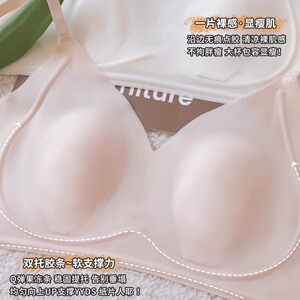 薄款兔耳朵凉感无痕内衣女士夏季无钢圈大胸显小收副乳透气文胸罩