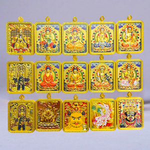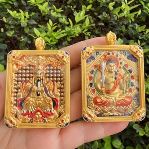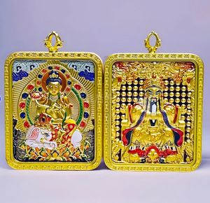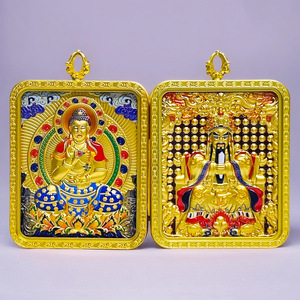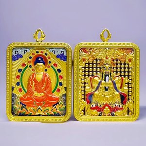 両面立体レリーフタンカ 五台山龍五師文殊の八守護仏 合金タンカ