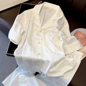 杭州シルクマルベリーシルク春夏薄いシルク女性の半袖ズボンツーピースセットルーズホワイトホーム服