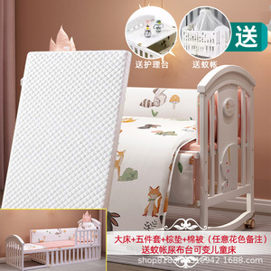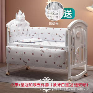 ベビーベッド無垢材ヨーロッパスタイル白可動ベビー bb 新生児多機能クレードル子供用スプライシング大型ベッド