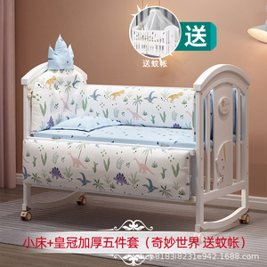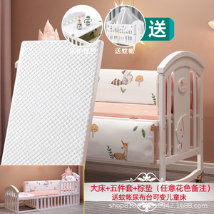 ベビーベッド + 5点セット + 茶色のマット + キルト (任意の色、無料の蚊帳にご注意ください)