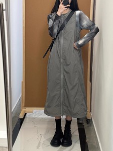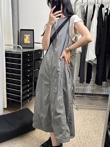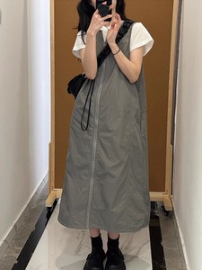 マウンテングレーワークベストスカートレディースサマードレス少し太ったピンチウエストスカート大きいサイズスカート太った痩身サスペンダースカート