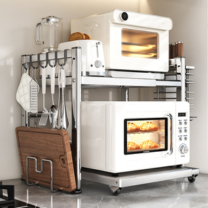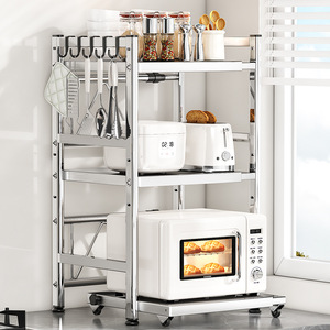 引き出し式電子レンジラックステンレス鋼キッチンオーガナイザーカウンタートップオーブン炊飯器エアフライヤー収納ラック