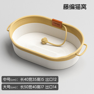 オールシーズン対応の籐製猫の巣、半密閉型の子猫の睡眠用、超大型の夏用クールな巣、猫の編み込みバスケットマット