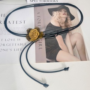 腰带女玫瑰花皮绳装饰夏季配连衣裙子毛衣高级感黑色加长腰绳腰链