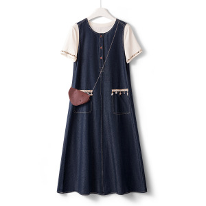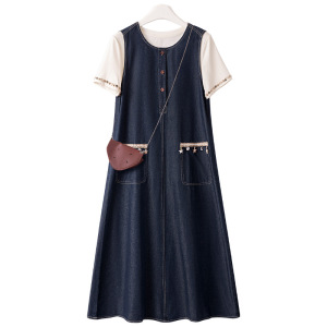 ドレス2025新作今年人気のデニムスカートTシャツ着用夏エレガントなツーピース薄手セット