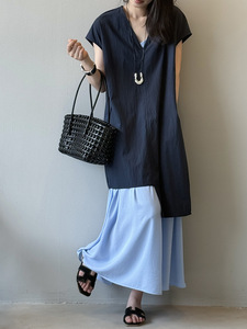 言葉の双韓系は不規則にvネックの上着を重ねてスカートのスーツの夏のワンピースの2セットの82502を着ます。