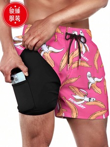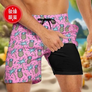 クロスボーダー低弾性ヨーロッパとアメリカのメンズパンツファッショナブルなアウターウェアホリデースタイルショートパンツルーズ二重層速乾ビーチパンツ