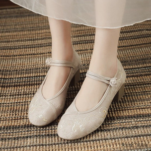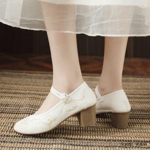 春と秋のチャイナドレスシューズ、レトロな布靴、古い北京刺繍靴、厚底シングルシューズ、漢服靴、古代風茶服靴