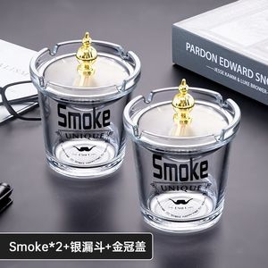 新しいガラス灰皿飛散防止クリエイティブホームリビングルームハイエンドオフィス防風灰皿寮用カバー付き