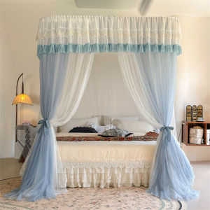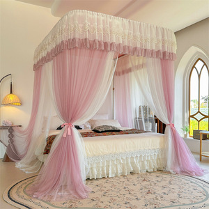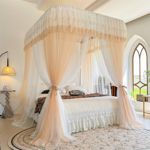 2025 新しい刺繍レール蚊帳 U 字型トラック寝室ホーム二層糸 3 ドア床置き暗号化厚み