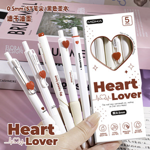 新しいハートビートスイートクールプレスゲルペン高価値ガールハートピンクブラックラブボタンブラシペン署名黒ペン