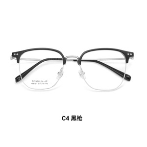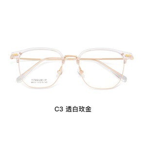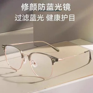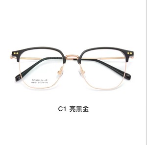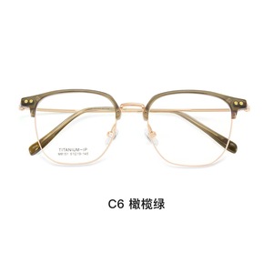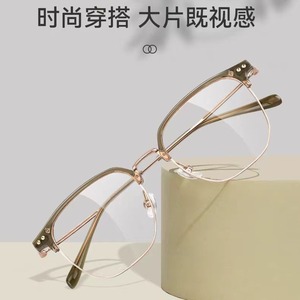 メーカー直販 純チタン近視メガネ 女性用 ブラウン ハーフフレーム メガネフレーム 超軽量 ゴールドワイヤー ブルーライトカット メガネフレーム