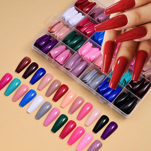 24色の光沢のあるミディアムロングサイズのつけ爪、長方形のネイルチップ、つけ爪、ネイルチップ卸売