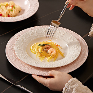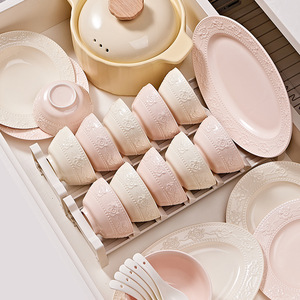 アンダーグレーズカラー 2025 新型レリーフフレンチクリーム風高価値家庭用丼、皿、ボウル、箸の組み合わせボウル