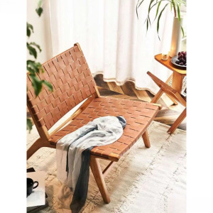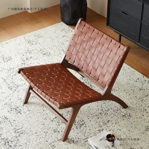 靠背椅编实木单人沙发椅北欧台椅子日式侘寂风小户型靠背懒人椅
