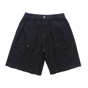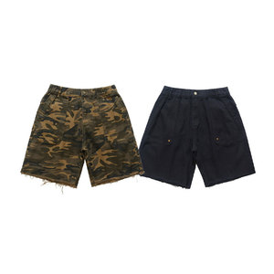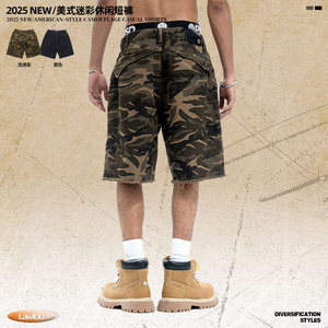 LawFoo アメリカン迷彩ルーズワイドレッグクォーターパンツレトロウォッシュカットタッセルローエッジ刺繍ショーツ男性用