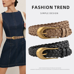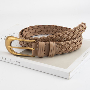 カジュアルパンツ、ジーンズ、ショートスカート用の手織りレトロ多用途レディースベルト、女性用パンチフリーベルト卸売
