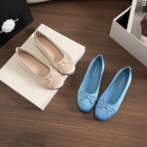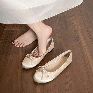 威威の女の人の3588-1の丸い頭のフランスのサテンの靴の女性の平底の浅い口の蝶結びの柔らかい底のバレエの靴