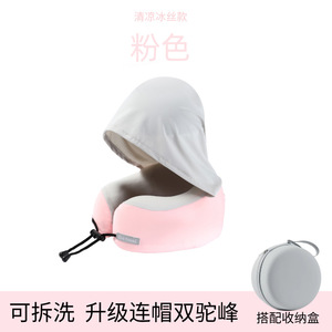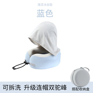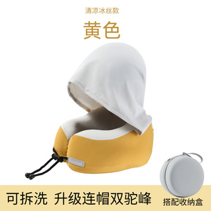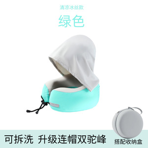 夏低反発 U 字型枕旅行枕ポータブル首枕飛行機昼寝枕夏のアイスシルクフード付き U 字型首枕