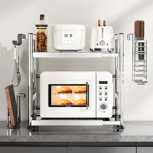 ステンレス鋼電子レンジラック引き出し式キッチン炊飯器ラック家庭用オーブンエアフライヤー収納ブラケット