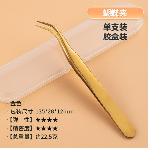ゴールド - バタフライクリップ (厚さ1mm) + プラスチックボックス
