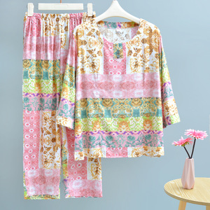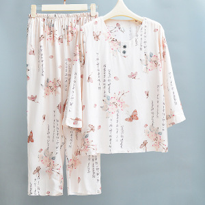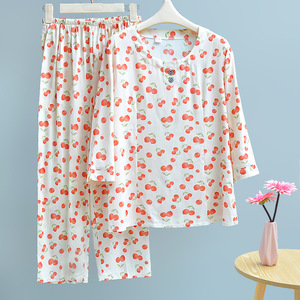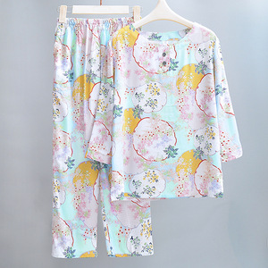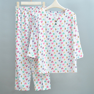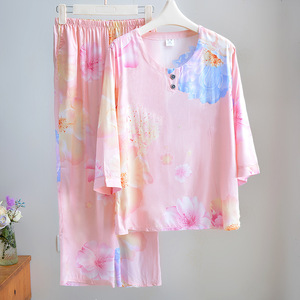 女性用パジャマ、夏用七分袖コットンシルク、極薄で涼しい人工綿スイートスーツ、薄手のホーム服、屋外で着用可能