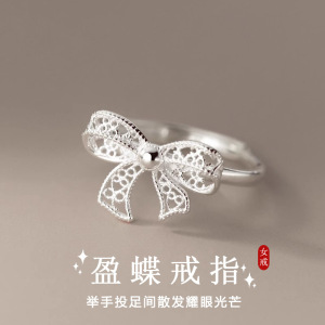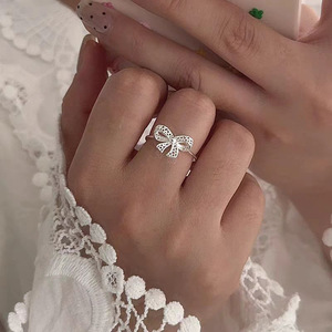 クールなスタイルの中空リボン調節可能なリング女性のための韓国ニッチシンプルな新鮮なリング甘いファッションハンドアクセサリー
