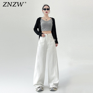 女性用ホワイトジーンズ2025トレンディで多用途な新しい夏のルーズドレープカジュアルワイドレッグパンツ女性用ホワイトパンツ