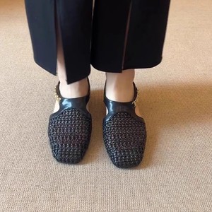 羊皮版の中で7cm高くなって、透かし彫りの包頭の半スリッパの外で空気を通してスカートの厚い底のサンダルの女性を配合します。