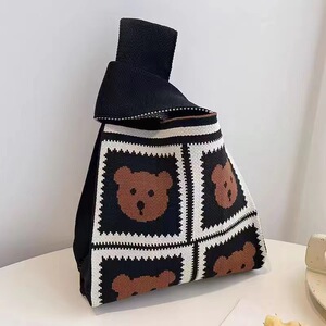 女性のニットバッグドーパミン小さなバッグトレンディな携帯電話バッグトートバッグニットバッグファッション漫画ニットハンドバッグ