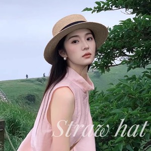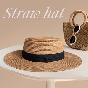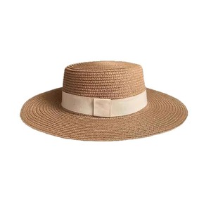 夏の海辺の女性用フレンチフラットトップ麦わら帽子、多用途の日焼け止めサンハット、UV保護フラットつばのシルクハット