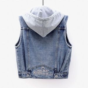 デニムベストレディース春秋韓国版スリムアウターウェア新しいフード付きベストベスト多用途ショートスタイル学生Shihua