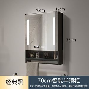 ブラックライト+曇り止め+時間と温度スマートミラーキャビネット-70CMダブル