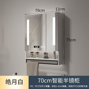 ホワイトライト+曇り止め+時間と温度スマートミラーキャビネット-70CMダブル