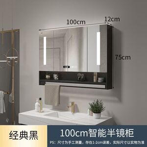 ブラックライト+曇り止め+時間と温度スマートミラーキャビネット-100CM