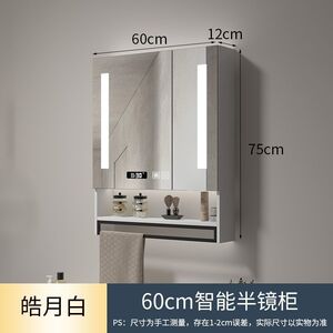 ホワイトライト+曇り止め+時間と温度スマートミラーキャビネット-60CM