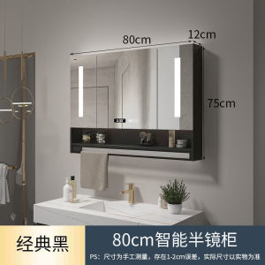 ブラックライト+曇り止め+時間と温度スマートミラーキャビネット-80CMダブル