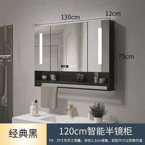 ブラックライト+曇り止め+時間と温度スマートミラーキャビネット-120CM