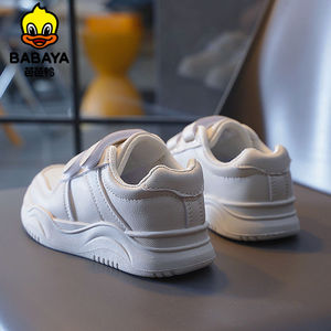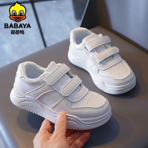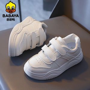 バービーアヒルの子供の通気性の板靴の女の子は白い靴の2024春の秋の新型の男の子の柔らかい底の運動靴にくっついています。