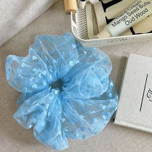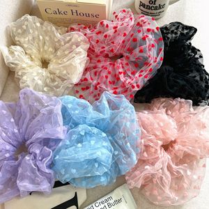 カラフルなラブドットシアサッカーケーン韓国風ふわふわメッシュインテースルーリング気質大型ヘアリング新しいヘアロープ
