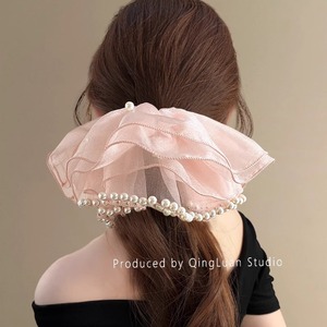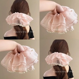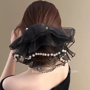 赫本髪輪網珠珠珠大腸髪輪優雅赫本風髪飾り気質低馬尾髪ひも飾り女