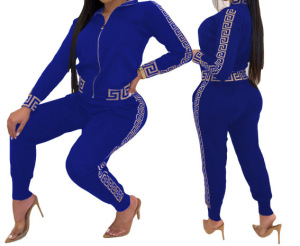 2025 新しいヨーロッパとアメリカのレジャープリントジッパースリムカジュアルスーツ女性
