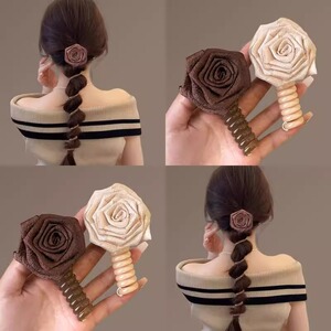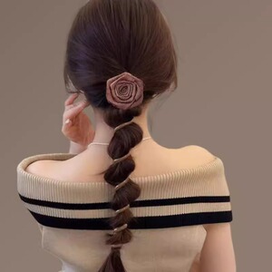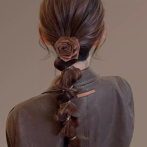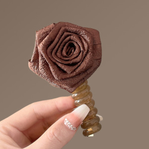 法式布艺玫瑰花发绳女电话线发圈泡泡编发头绳加粗高弹力皮筋批发