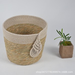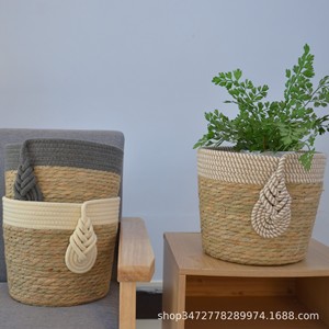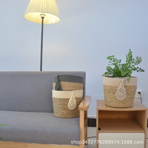 国境を越えた熱い販売のススキ綿ロープ素材の縫製収納バスケットリビングルーム織バスケット収納ボックス