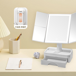LED化粧鏡自己発光フィルインミラー折りたたみ化粧鏡格納式収納ボックス付きデスクトップシェルミラー